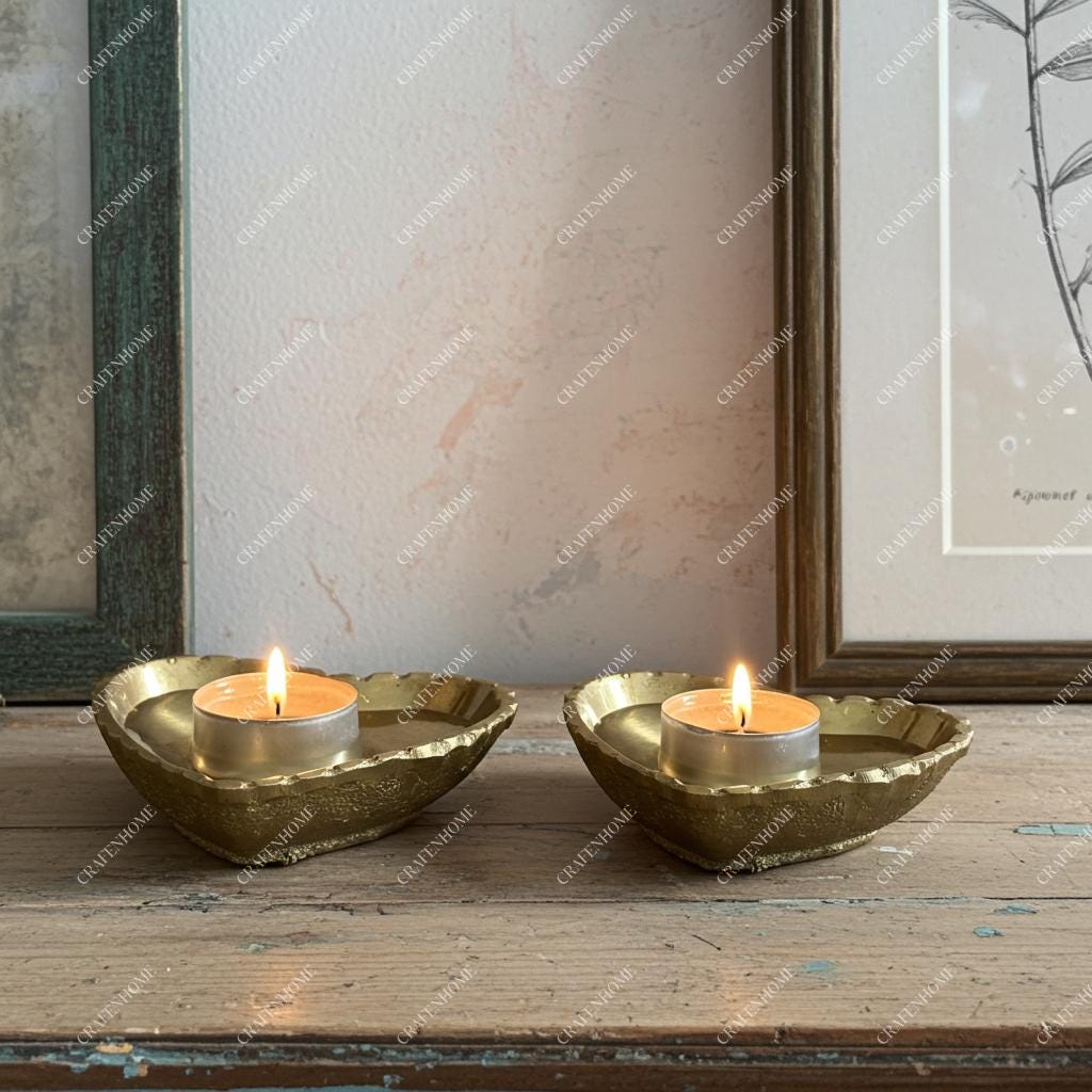 Brass Heart Candle Holder – Solid Tealight Bowl for Jewelry or Keys