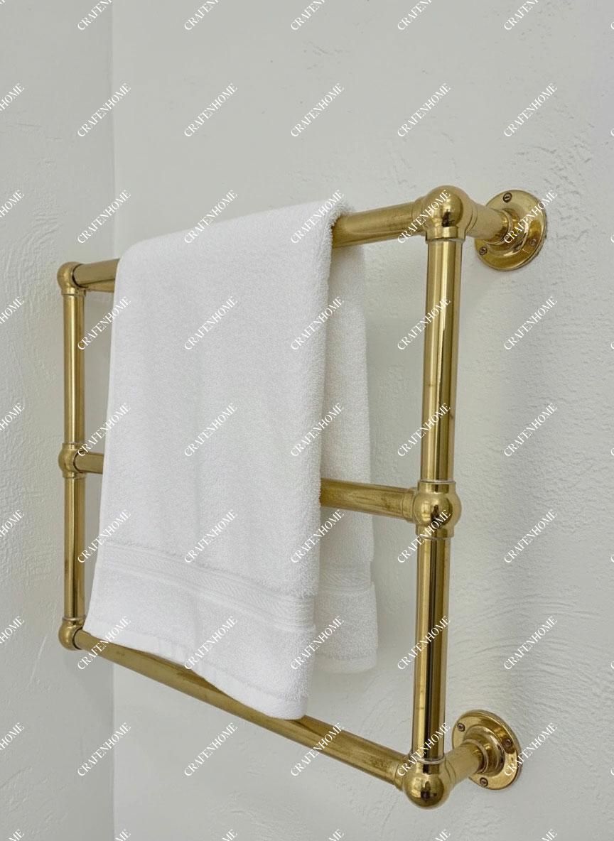 Handmade Unlacquered Brass Towel Warmer: Wall Mounted Bathroom Rail